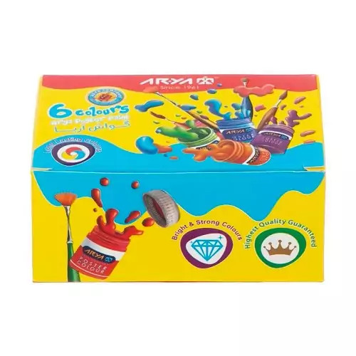 مشخصات: تعداد رنگ موجود در بسته :شش ظرفیت مخزن:30 قطر مخزن: 32 میلیمتر سایر توضیحات: - ابعاد هر بطری: 5× 3.2×3.2 سانتیمتر - مناسب برای افراد بالای سه سال - غیرسمی - ابعاد بستهبندی:5×7×11 سانتیمتر