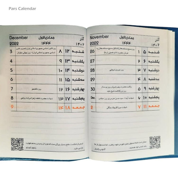 شما می توانید تقویم پالتویی پارس قطع خشتی را به عنوان یک گزینه کاربردی و زیبا برای هدیه سال نو انتخاب کنید.