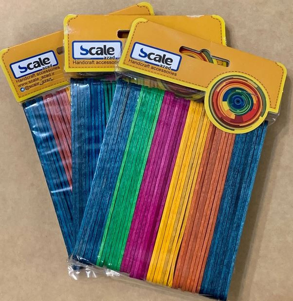 چوب بستنی باریک کوچک رنگی اسکِیل دارای ۶ رنگ مناسب برای کار های هنری قابل استفاده برای دانش آموزان سایز : ۱۱ سانتی متر