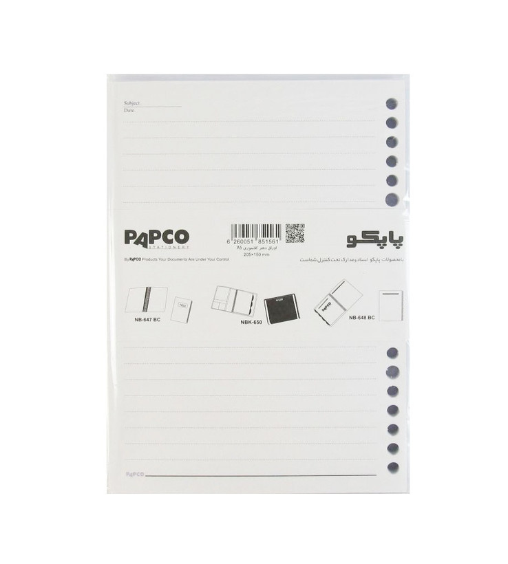 برای استفاده مجدد از کلاسورها یا دفترهای کلاسوری باید برای آنها اوراقی مخصوص تولید کرد. پاپکو نیز برای دفاتر خود اوراقی را به همین منظور به بازار وارد کرده است. کاربرد این دفترها و اوراق آنها برای یادداشت برداری در کلاس ها و جلسات است. اوراق دفتر کلاسوری A5 پاپکو 20 پانچ و یک خط است، همچنین 100 برگ دارد. این برگه ها در ابعاد 14.8 × 20.5 سانتی متر که تقریبا به اندازه یک برگه A5 است، توسط شرکت پاپکو تولید و عرضه می گردد