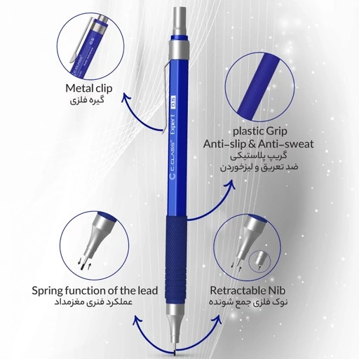 مداد نوکی 0.9 میلیمتری سی.کلاس مدل اکسپرت، یک مداد با برند معتبر سی.کلاس بوده که برای نوشتن، طراحی و نقشه کشی مناسب است. نوک این مداد دایرهای بوده و دارای قطر 0.9 میلیمتر است که این موضوع کافی برای کشیدن خطوط دقیق و واضح است. بدنه این مداد از ترکیب فلز و پلاستیک ساخته شده است که سبب مقاومت و سبکی در دست استفاده کننده میشود. این مداد با ابعاد طولی حدود 14 سانتیمتر، مناسب برای استفاده است و به راحتی در دستان شما قرار میگیرد. این مداد ساخته شده در چین است و با کیفیت و قیمت مناسب، گزینهی مناسبی برای افرادی است که به دنبال یک مداد با نوک 0.9 میلیمتری مرغوب هستند. با توجه به ویژگیهای منحصر به فرد این مداد، مناسب برای استفاده روزمره در محل کار، مدرسه یا خانه است. کیفیت بالای بدنه و ساختار این محصول، باعث شدهتا مدت زمان زیادی بتوانید از آن استفاده کنید.