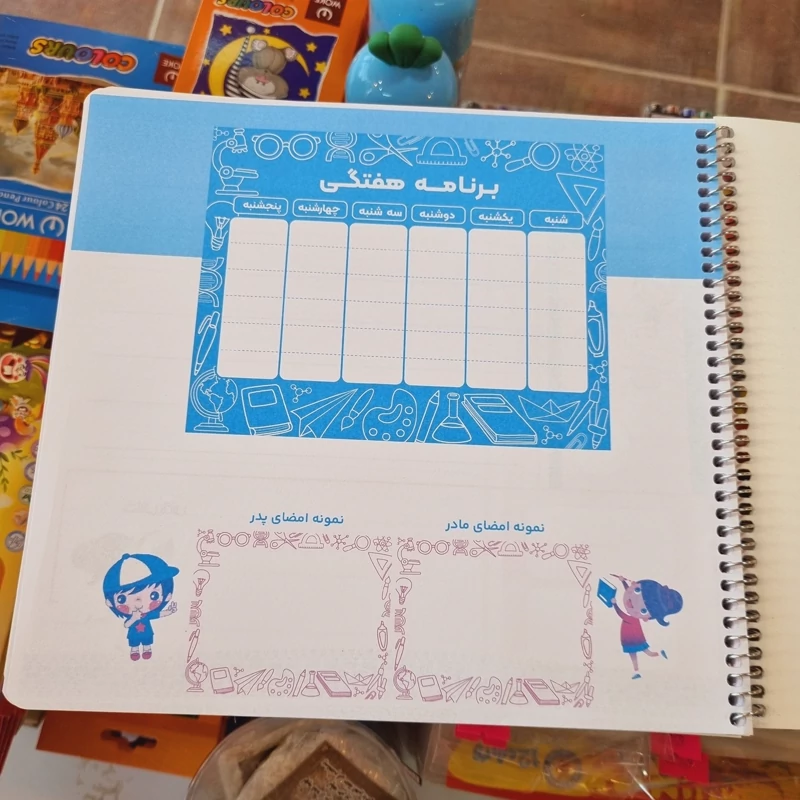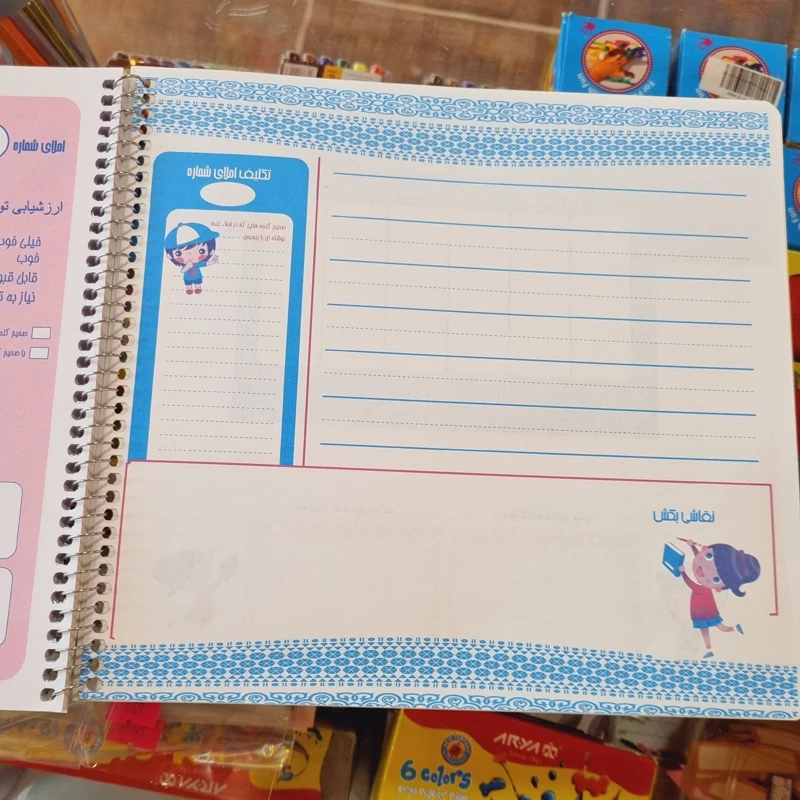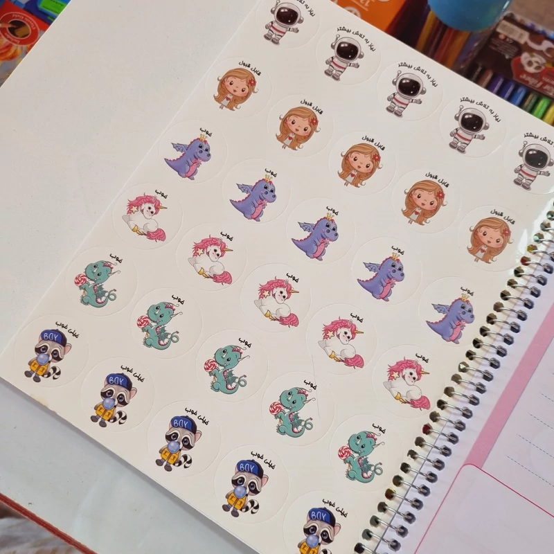 دفتر املا یه دفتر زیبا برای املای دانش آموزان همراه یک ورق برچسب تشویقی