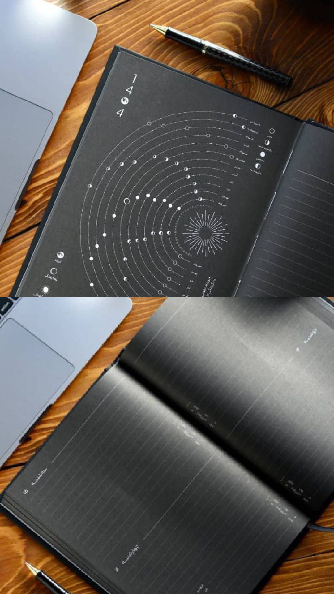 ✅ کاغذ داخلی مشکی (مناسب برای نوشتن با ماژیک ژله ای سفید، طلایی یا نقرهای)