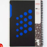 همانطور که در تصاویر مشاهده می شود : خط کشی داخل صفحات آبی رنگ کادر حاشیه قرمز فاصله بین خطوط : 0.9 سانتی متر کاغذ 70 گرم دفتر با کیفیت خیلی خوب جنس جلد: طلقی محکم نوع صحافی: فنر دوبل سایز: وزیری ساخت ایران